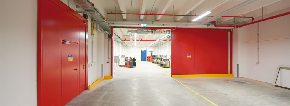 Les portes sectionnelles à panneaux injectés de mousse polyuréthane (ISOV.40 ou ISOV.80) constituent une solution particulièrement adaptée aux bâtiments industriels, plate-formes logistiques, entrepôts, garages...